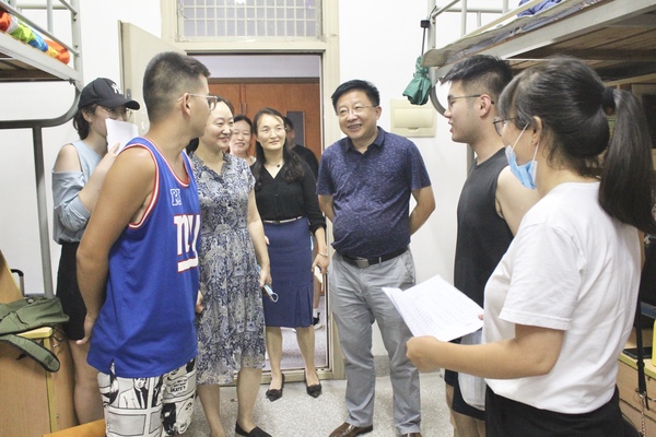 会议之后,冯春芳、朱广东和高娟带领班主任走访学生宿舍,看望疫情返校后的学生,就学生适应问题、生活和学习状态进行关心和指导。