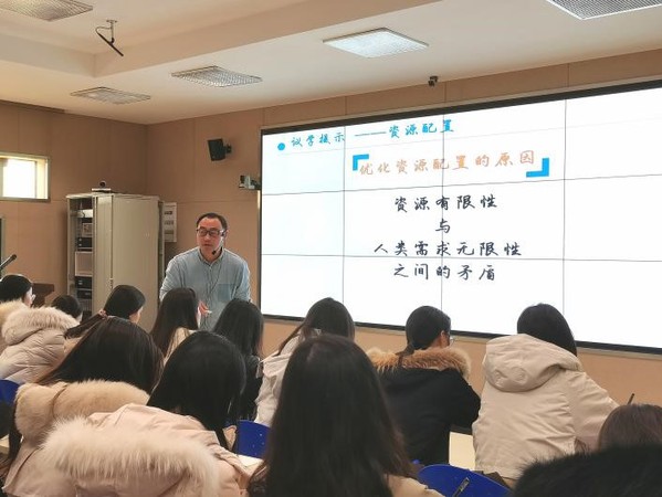 林大伟老师为同学们上了一节以“使市场在资源配置中起决定性作用”为主题的教学示范课。林老师采取议题式教学的方式,结合情景教学,以“龙鼻嘴村的‘市场经’”为议题,以两个鲜活的事例,紧扣“为什么要念市场经?如何念好市场经?”这一问题,带领同学们走进龙鼻嘴村的同时也让大家深入了解了市场在资源配置中的决定性作用。在教学展示中,林老师还向同学们讲述了他的教学设计思路,与同学们分享教学方面的经验,并为同学们解答疑惑。示范课结束后,思想政治教育系主任宋敏高度评价了林老师的课,是议题式教学的典型示范课,问题意识强,紧扣教学内容,如剥洋葱一般,让同学们随着老师问题的层层引导,深刻把握教学内容。同时,她希望同学们课后能认真学习林老师的教学设计思路和教学方法。