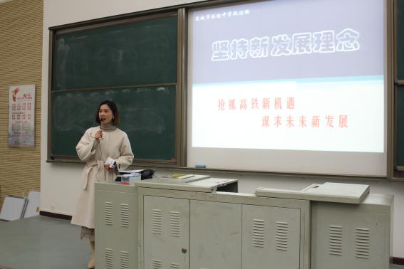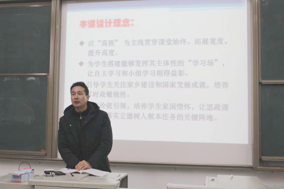 成效会老师进行了题为“坚持新发展理念”的教学展示。成老师通过热点链接、预学反馈、播放视频等多种方式引导学生关注家乡建设和国家发展成就,以“高铁”为主线贯穿课堂始终,拓宽视野,提升高度,为学生搭建能够发挥其主体性的“学习场”。随后,殷书钿校长对成老师的课进行点评总结,并介绍了中学教育的教学理念、评价标准和教师素养要求。他认为一堂好课就是要使课堂活起来、让学生动起来,这就要教师精心备课,选择生活化的场景来活化课本知识。他强调,教师要注重价值引领,培养学生家国情怀,让思政课堂成为落实立德树人根本任务的关键阵地。