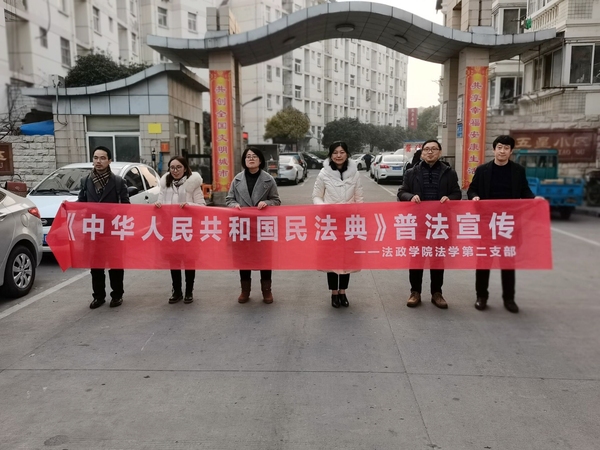 民法典是一部固根本、稳预期、利长远的基础性法律。为了助力《民法典》走进千家万户,融入日常生活,12月23日下午2:30,法政学院法学第二支部组织开展了《民法典》普法宣传活动。法学教师周丽、李霞、单颖华、张唯伟、唐卫华、赵桂玉、葛伟加入其中,他们进入盐城五星社区,化身为普法宣传员。方正学社成员和部分学生踊跃参与。
