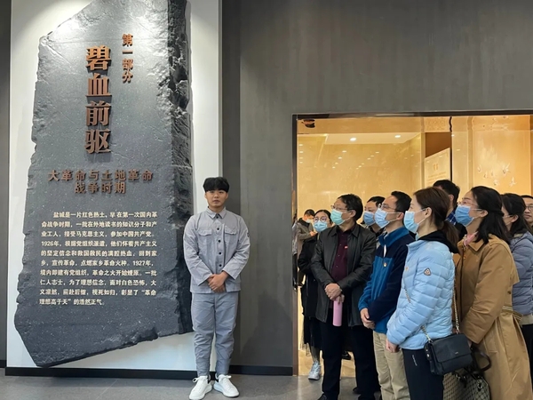 在革命烈士陈列馆,全体教师一同聆听烈士们的红色事迹,身临其境感受革命先辈为中国革命事业不畏牺牲、艰苦奋斗的光辉历程。将红色基因烙印在生命深处,成为永不忘怀的文化记忆。