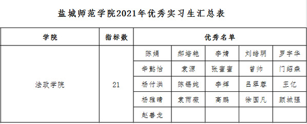 经指导老师推荐、二级学院审核等环节,21名同学、3位老师符合2021年优秀实习生和优秀实习指导教师条件。现将通过审核的《法政学院2021年优秀实习生和优秀指导教师名单》予以公示,公示时间为2月25日至28日,公示期间如有异议请发邮件到9379222@qq.com进行申诉或反映情况,逾期不予受理。