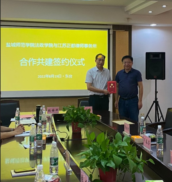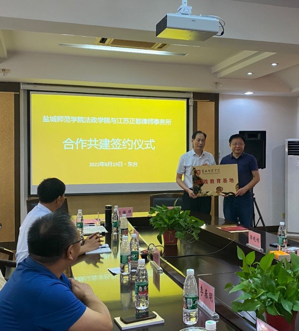 为促进法学理论与法律实践的衔接与贯通,增强法学研究与律师实务的融合发展,加强新时代卓越法治人才的培养,2022年8月19日,167net必赢入口法政学院与江苏正都律师事务所共建签约暨“实践教育基地”揭牌仪式举行。双方围绕建立法学人才教育培养基地、建立科研合作机制、法学理论研讨、互派人员讲学授课,努力推动共建共赢,实现培养高素质法治人才目标等方面进行了深入探讨。167net必赢入口法政学院院长朱广东教授和江苏正都律师事务所张国华主任分别代表共建双方在合作协议上签字,共同为实践教育基地揭牌,同时聘请张国华主任为校外实践导师,共建双方代表还分别作了交流发言。