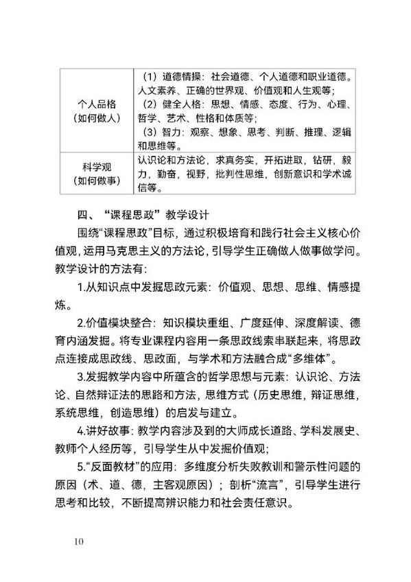 (2)自然科学类专业课程要突出培育科学素养、强化创新意识,培养辩证唯物主义和历史唯物主义思维,增强人与自然和谐共生意识和构建人类命运共同体的历史担当。