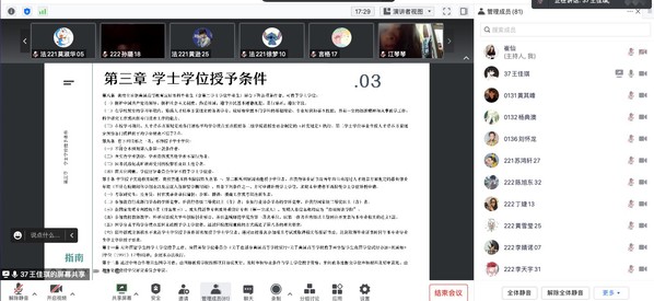 为了使2022级新生及时了解法学专业人才培养方案和我校学士学位授予条件,营造良好校风、学风,激励广大同学积极进取、奋发向上,10月6日晚,法政学院在线上举办了新生入学教育系列专题讲座,解读2022级法学专业人才培养方案和学士学位授予工作实施细则,由学工办主任王川主持、法律系主任周丽、新生班主任崔仙主讲本次会议,法政学院2022级全体新生参加。