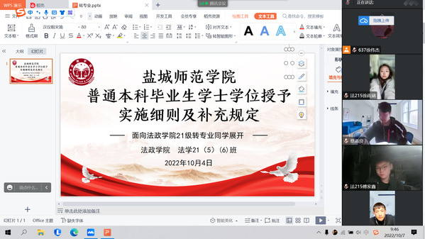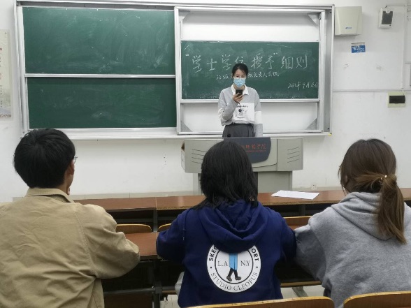 2022年10月5日晚7点,我院于公共教学楼B109和腾讯会议线上线上同时进行普通本科毕业生学士学位授予实施细则及补充规定讲解活动。我院学习部部长带领副部,面向22级新生以及转专业同学召开此次会议。