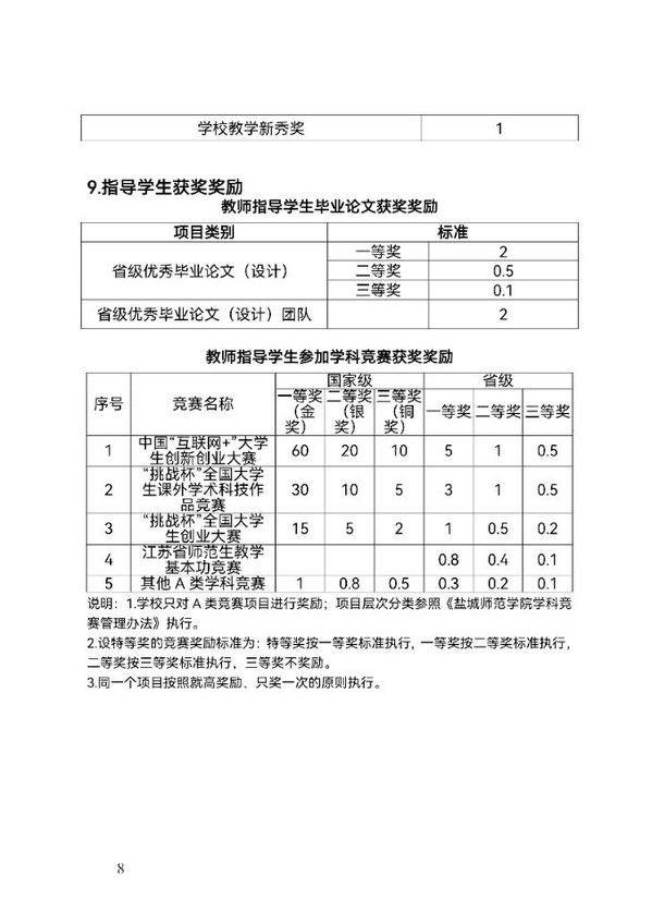 (八)教师队伍建设类:包括国家级教学团队、教学名师、全国优秀教师,省级教学团队、教学名师,校级教学新秀奖、教学精英奖、教学杰出奖。
