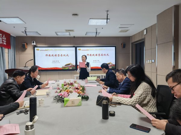 为深入学习贯彻落实党的二十大精神,办好人民满意的教育,法政学院开展“奋进新征程,法政先锋在行动”系列活动。11月15日下午,法政学院组织中青年教师开展“师德传承,匠心育人”主题活动暨师德践诺签名仪式。学院原院长刘德林教授出席活动并作主题发言,学院班子成员及全体中青年教师参加活动。党总支书记冯春芳主持活动。