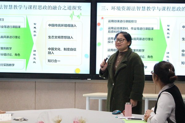 青年教师授课展示环节,由本届中青年教师会讲比赛参赛者谷海霞和赵桂玉老师进行微授课。与会教师围绕授课内容及形式纷纷展开讨论。国际法教研室主任任宪龙老师从法律问题的介入方式及专业性的呈现方面发表个人观点。上届会讲比赛二等奖获得者葛伟老师从个人参赛经验角度,对说课的形式及内容提出改进建议。其他与会教师也分别从内容设计、能力培养、价值观塑造等方面提出有建设性的意见和建议。