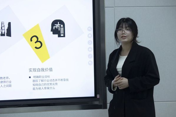 郭佳慧对本次职业规划大赛进行总结发言。她鼓励同学们明确自身职业定位,认真学习法学专业知识,充分利用学院搭建的平台,全方位锻炼自我,提升综合素养,努力成为德法兼修的卓越法律人才。