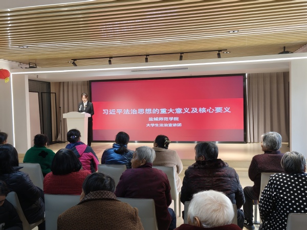 多年来,我校“大学生法治宣讲团”“法律援助盐阜行”的足迹遍布盐阜大地,未来将继续发挥充分发挥高校服务社会的能力,积极宣传习近平法治思想,大力弘扬社会主义法治精神,为加快建设法治社会贡献盐师力量。