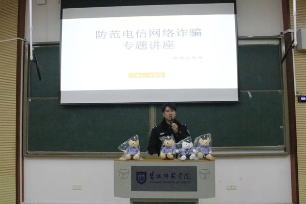 为积极响应国家加强网络安全教育的号召,切实提升167.nt必赢官网师生的网络安全意识与防诈能力,167.nt必赢官网联合历史与公共管理学院,于12月13日在生化楼报告厅举办了一场“防范电信网络诈骗”专题讲座。本次讲座特邀盐城市公安局经济技术开发区分局新城派出所的朱津苇警官主讲。