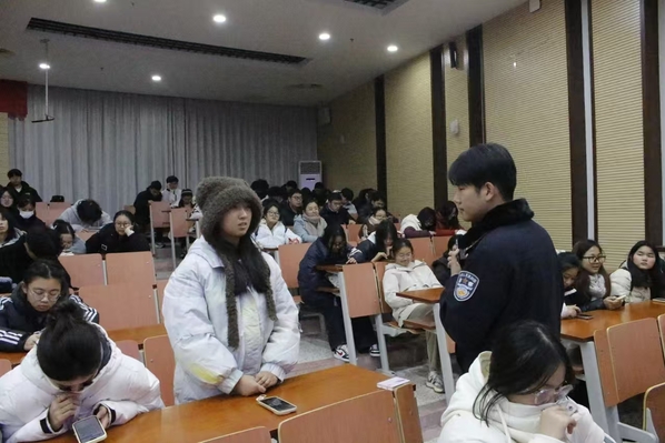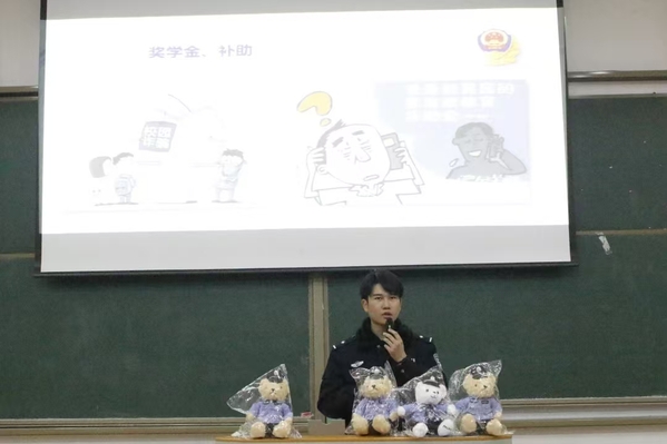 讲座伊始,朱津苇警官以现场提问的方式迅速吸引了同学们的注意力,借此引出当前社会常见的诈骗类型,包括网络兼职刷单诈骗、虚假网络贷款诈骗、冒充公检法诈骗以及“杀猪盘”等。朱警官结合详实的数据,深入剖析了电信诈骗已成为大学生群体面临的重大安全隐患,其形势严峻不容小觑。他指出,近年来,大学生群体遭受电信诈骗的案件数量呈上升趋势,部分诈骗手段迷惑性极强,给学生的财产安全和身心健康带来了严重威胁。