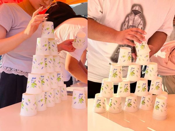 “限时杯塔叠叠乐”区域则充斥着专注与协作的紧张感。在规定时间内将纸杯稳稳地筑成高塔,不仅是速度的比拼,更是对耐心、专注力的考验。每一次成功的堆叠,都伴随着成功的欢呼。大家在搭建中释放压力,增强了彼此之间友谊的连接。